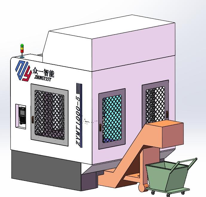 底部配置整體排屑器,有效使用寬度550mm,排屑器末端高度 700mm,因切割料柄較大,故排屑器為特殊加高排屑器。