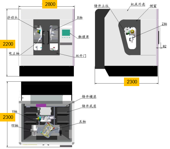 機(jī)床尺寸 | 長(zhǎng)*寬*高 | mm | 2800*2300*2200 |
