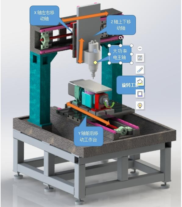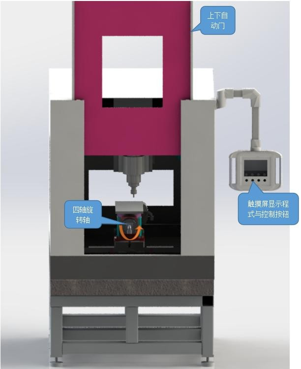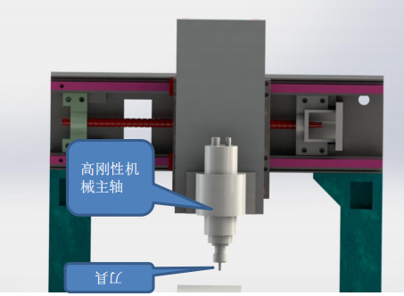 設(shè)備Z軸可安裝不同直徑的刀具,根據(jù)產(chǎn)品實際加工要求,系統(tǒng)自動切換主軸刀具。